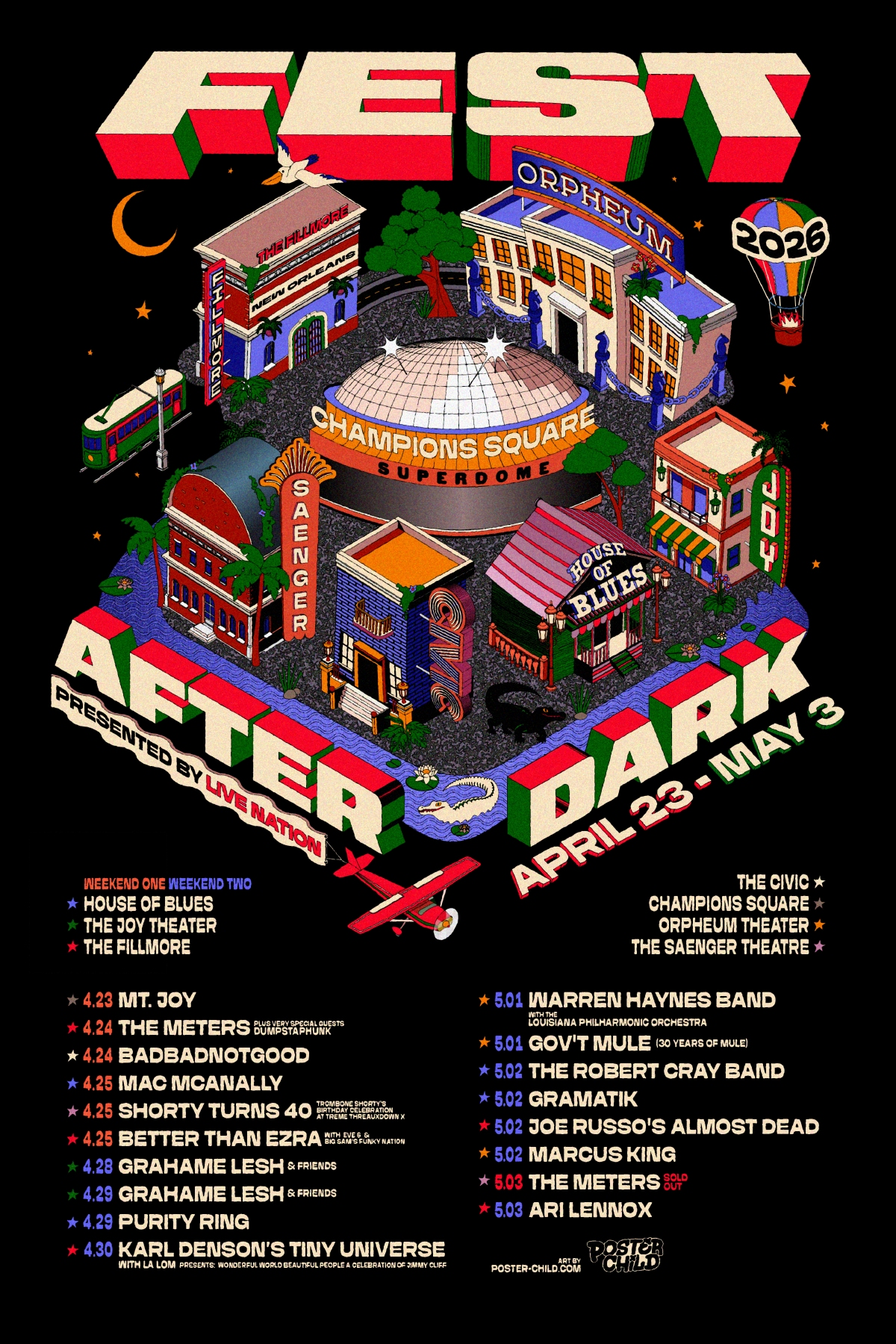 Special commemorative posters for sale at the merch tent or as artist, guest, and VIP gifts. A great place to utilize screenprinting and to let art elements take center stage.